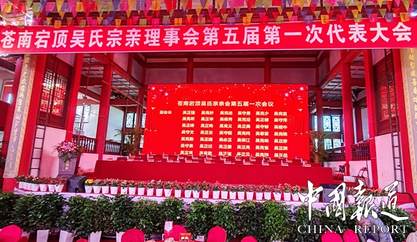 中国报道讯(吴蜀丰通讯员吴桂潮)山海苍南,阳光普照,其乐融融;宕顶吴氏,宗情浓浓。11月8日,浙江省苍南宕顶吴氏宗亲会第五届第一次代表大会在宕顶吴氏祠堂隆重举行。这是苍南宕顶吴氏家族中的一大事,也是天下吴氏值得共同庆贺的一大喜事。参加会议的一千多名当地宗亲及来自全国各地应邀而至的吴氏代表欢聚一堂,共同为这一神圣而又热烈的盛会祝贺,为宕顶吴氏的荣耀而又辉煌的盛誉点赞!