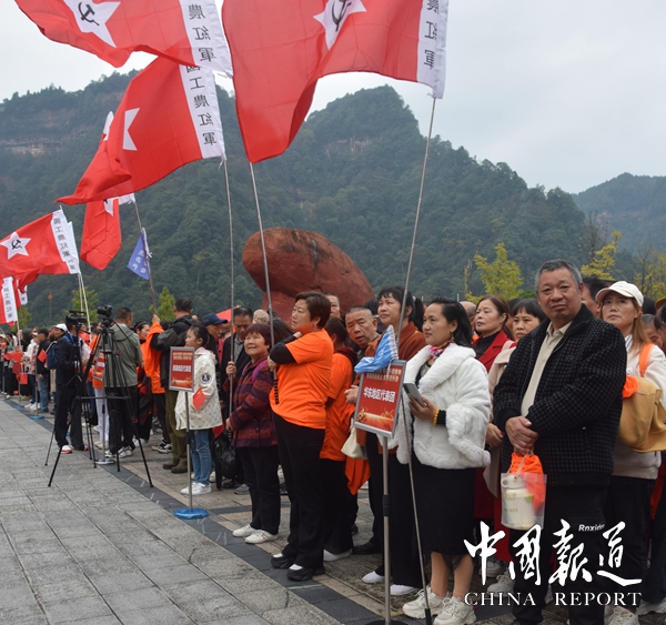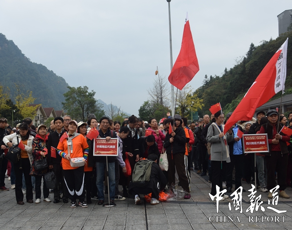 中囯报道讯(吴天下报道)初冬的四面山景区迎来了红色旅游小高峰。11月9日,“传承红色基因·弘扬长征精神暨渝见四面山·全民在行动”红色之旅在四面山景区北门启动,几千名游客来到四面山,欣赏美景的同时,体验红色文化,接受红色洗礼。