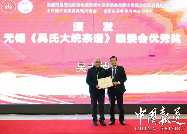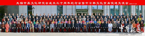 中国报道讯(通讯员吴温桦)11月24日,“无锡市吴文化研究会成立三十周年纪念会暨中日韩文化贸易促进交流会”在锡州花园酒店召开。这次大会分两个阶段举行,纪念会和学术分享由吴文化研究会主办,交流会的举办单位是江苏省高空机械吊篮协会公平贸易工作站。来自海内外的吴文化研究学者和企业经贸界代表约258人出席这次大会。