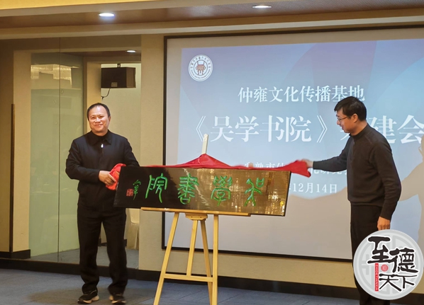 现场举行了《吴学书院》揭牌仪式,常熟市仲雍文化研究会会长吴建明主持与江阴市季札文化研究会会长吴建明共同为书院牌匾揭幕。