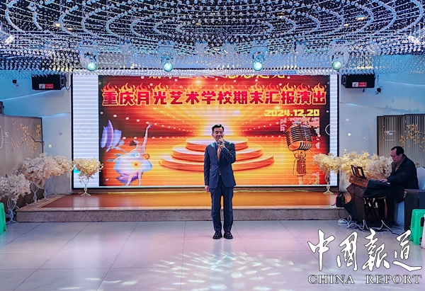 中国报道讯(吴蜀丰报道)12月20日下午,由重庆观音桥合唱团举办的2025年月光成人新年音乐会在重庆渝北冉家坝铞菜源酒楼二楼宴会厅举行。