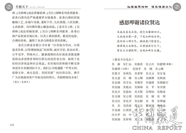 中华至德十二姓,华夏至德名圣,浙吴总会执行会长吴焕宰的诗词五首,《至德天下》创刊号得到了晋商万里茶(武夷山)茶叶有限公司,福建南平祥寿茶籽科技有限公司,贵州老吴台集团,温州凯诚包装有限公司等单位友情赞助。