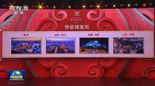 中央广播电视总台《2025年春节联欢晚会》官宣分会场花落重庆、湖北武汉、西藏拉萨、江苏无锡四地后,迅速引发社会热议,众多网友评论说“今年春晚就在家门口,真骄傲”“灯火璀璨,一整个期待住了”“有我一直想去打卡的城市!”…