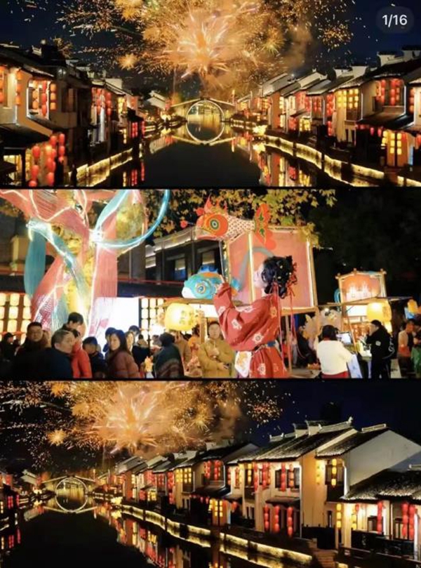 梅里古镇“爆火”随着春晚分会场的热度不断攀升原来有点“低调”的梅里古镇也瞒不住了今年,梅里古镇以“吉庆有余”为主题打造了一场华彩盛宴桨声杳杳,灯影幢幢花灯一亮,年味儿立刻弥漫开来。