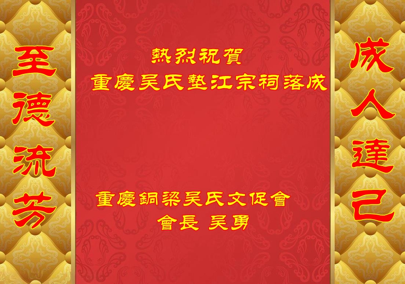 重庆铜梁吴氏文促会致重庆吴氏垫江宗祠落成贺信
