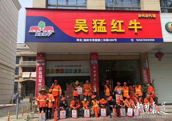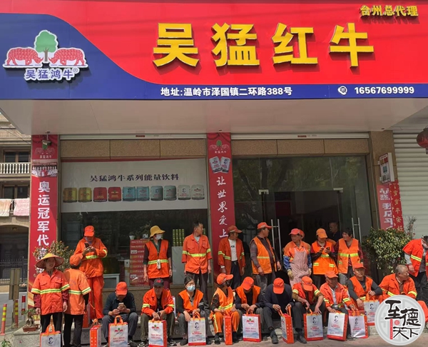 近日,吴猛鸿牛温岭总经销商团队负责人谢兵,开展公益活动——“送清凉”行动收获一份暖心。当环卫工人们收到吴猛鸿牛功能量饮料后表示十分感谢,这份爱心得以传递,让这座城市更加温暖。