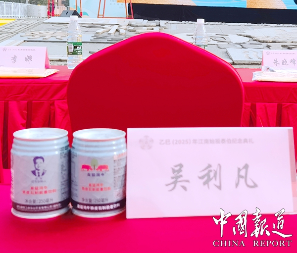 4月9日至10日,在乙巳(2025)年泰伯祭祀大典欢迎晚宴和午宴的餐桌上,人手一瓶吴猛鸿牛能量饮料特别深受喜爱。“这次终于喝到了吴猛鸿牛,口感劲爽,”来自上海的代表吴军如是说。