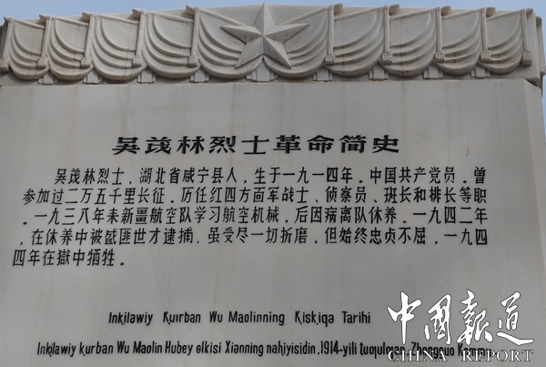 全国解放后,吴茂林烈士的遗骨,安葬在乌鲁木齐市南郊的革命烈士陵园,墓前竖立着刻有董必武亲笔题字的高大洁白的汉白玉墓碑——吴茂林烈士之墓。每逢清明节,各族人民川流不息地来到烈士陵园祭奠烈士的英灵,缅怀烈士。(图文/吴蜀丰)