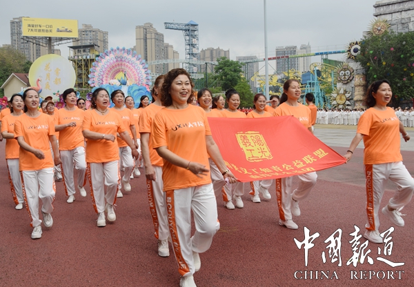 崇高健康大舞台第七届全民运动会(重庆赛区)开幕式今天(4月27)上午在渝北区圣名世贸游乐城隆重举行!来自阳光义工知青公益联盟、文艺联盟旗袍总团、太极总团、歌舞总团近1000多名志愿者代表参加了本届运动会开幕式。