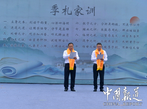 申港小学的同学们带来了情景朗诵《时光里的诚信印记》,让千年诺言在新时代的琴弦上重新震颤;江阴高中老师胡伟红带来了歌曲《挂剑》,延陵弘义,礼赞今朝。活动中,发布了季子文化传承基金“三个一”工程,即:出版一套季札诗词集,集历代佳作,展季子风采;组织一场季札书画展,用笔墨勾勒季子传奇人生;创作一批季札教学课,让季子诚信精神走进校园。期间给项目发起人颁发聘书(一套季札诗词集: 承洁;一场季札书画展:华杰;一套季札教学课程及教材:吴扬尘)。稚子清音传古训、枣树旧枝发新芽,临港实验幼儿园的孩子们带来了绘本剧《枣树挂钱》。舞蹈《粉墨春秋》,诵读《季札家训》,《诚信礼让宣言》千人签名仪式及祭祀大典活动丰富多彩。