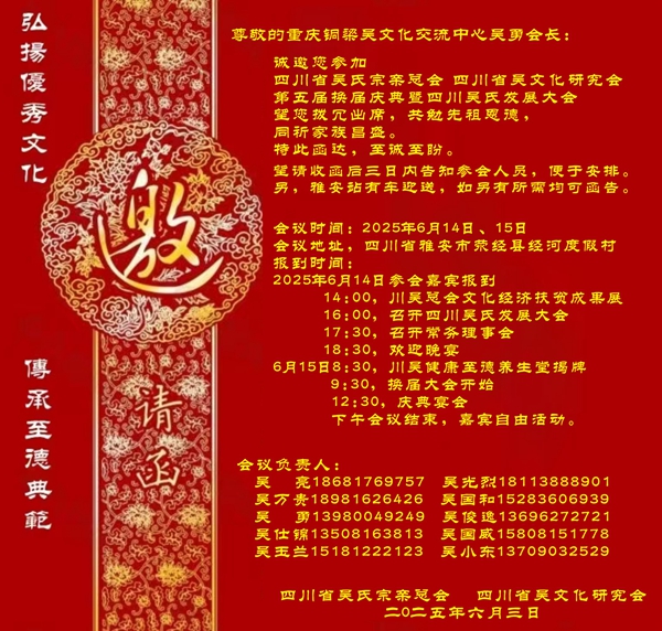 四川省吴氏宗亲总会并吴天智会长: