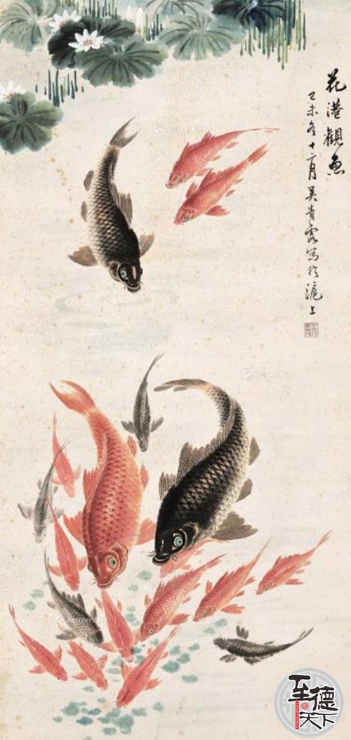 作品特点 吴青霞女士是一位全能型的画家。在她的创作中,山水、花鸟、人物,各类题材都有涉及。她的作品以工笔和写意相间,笔墨劲挺流畅,色彩明洁秀丽。吴青霞作品中最具代表性的是鲤鱼和芦雁,这一方面源于她对这两种动物发自内心的喜爱,另外也是她长期悉心观察和对前人作品不断揣摩的结果。她在创作中注重深入生活,因此在一些细节的描绘上,处理的更加严谨细腻而不失特色。吴先生的作品一直深受人们的喜爱,2004年的年底,吴青霞先生一幅名为《鱼跃》的作品在北京以220万元人民币的高价成交,反映了市场对吴青霞女士作品的认可。