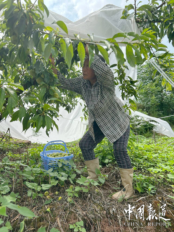 在重庆市丰都县十直镇红庙子村,有一片充满生机与希望的李子园。当下,正值李子成熟之际,整个果园仿佛被大自然打翻了绿色的调色盘,又点缀上了无数青翠的“宝石”,美不胜收。步入果园,清新的果香扑鼻而来,令人心旷神怡。一棵棵李子树整齐排列,枝叶繁茂,沉甸甸的果实压弯了枝头。这些李子圆润饱满,表皮泛着诱人的青绿色,仿佛在向人们诉说着成熟的故事。