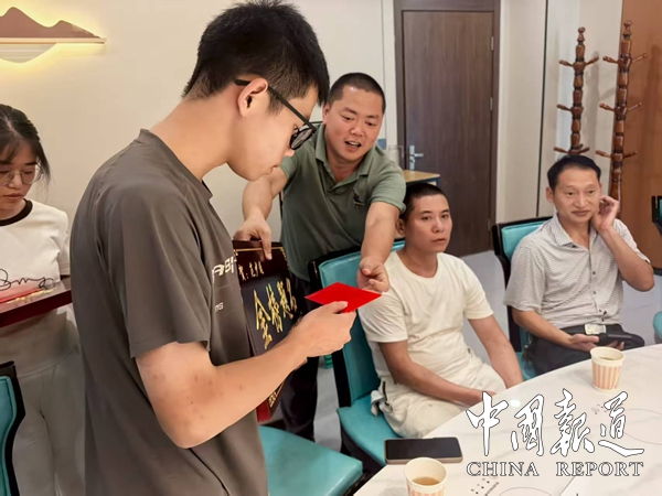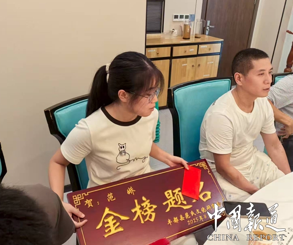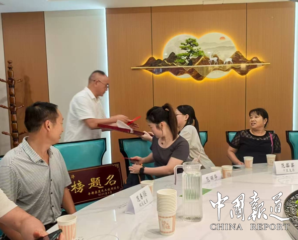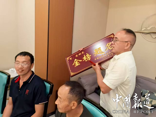 在激昂的礼乐声中,9名学子依次登台。研究会为其颁发特制实名的“金榜题名”金字木奖牌;同时授予分级现金红包(最高800元)。一位考入师范院校的学子紧握红包哽咽:“宗亲们以“划粥断齑”方式节省经费也要给我们红包鼓励,这是族人托付给我的教育薪火,他日必以育才反哺社会!”