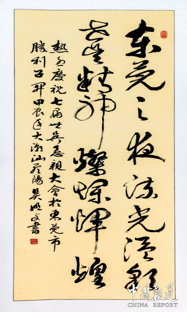 作为岭南书坛的中坚力量,吴明文的作品既承袭了传统书法的精髓,又融入了鲜明的时代个性,堪称"岭南风骨"的生动注脚。让我们以吴明文"师古不泥古"的艺术态度,共同推动中华书法在当代的创造性转化。(图文/吴蜀丰)