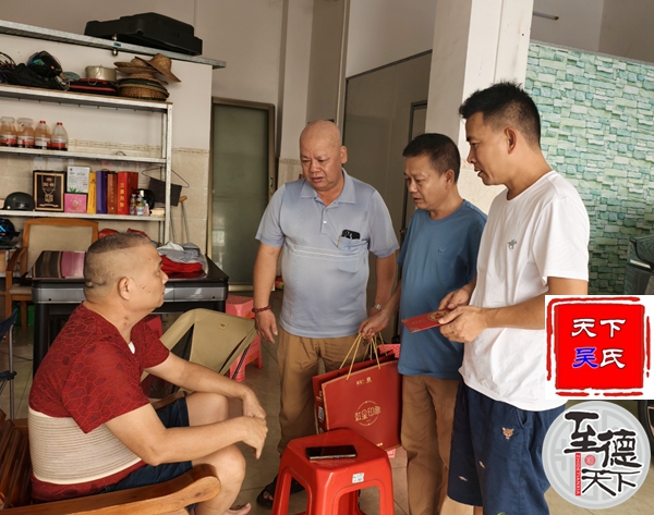 天下吴氏网讯(海南工作站吴乾山道)秋意渐浓,桂子飘香,在中秋佳节来临之际,为弘扬中华民族尊老、敬老、爱老、助老的传统美德,让刚刚病愈出院的海口市吴贤秀文化研究会会员吴德雄宗长,感受到节日的温暖与吴氏宗亲会的关怀。
