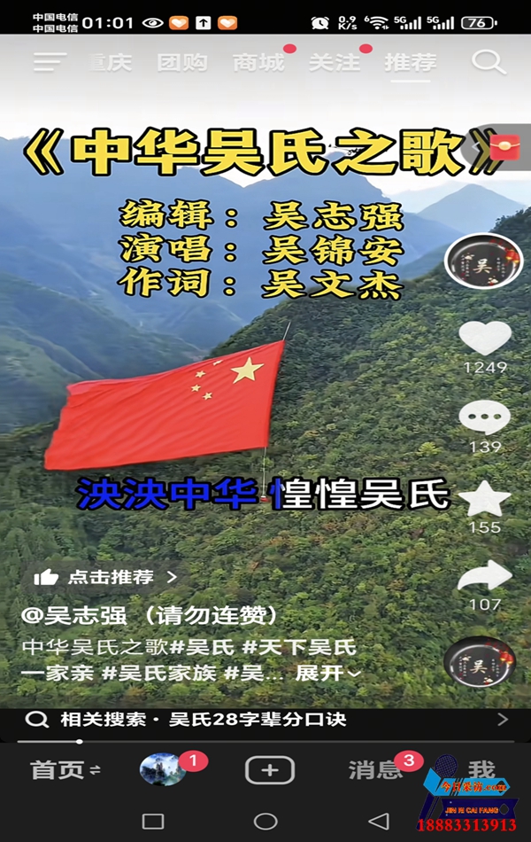 ◎非常好听为中国点赞!为吴氏点赞!为我是吴氏一员点赞!--吴琮 天桥国学(网友)