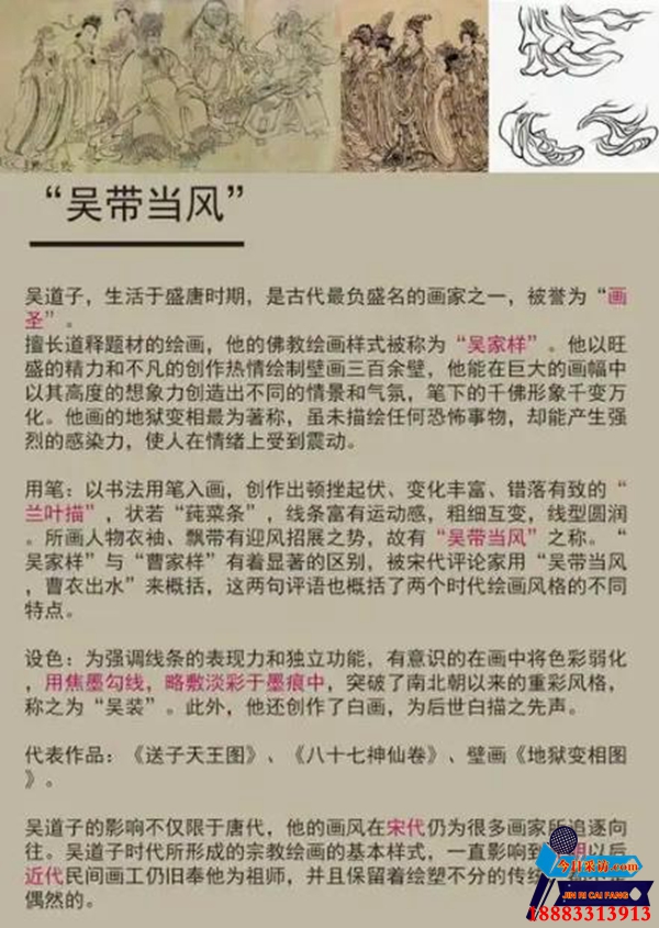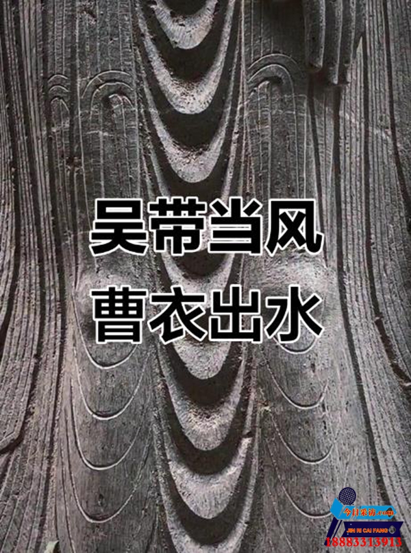 吴带当风,曹衣出水,谚语。指吴道子的人物画,衣带犹如临风飘举,形象生动;曹仲达的人物画,衣裳如出水芙蓉,紧凑秀密。吴:唐代画家吴道子。曹:北齐画家曹仲达。指吴道子的人物画,衣带犹如临风飘举,形象生动;曹仲达的人物画,衣裳如出水芙蓉,紧凑秀密。