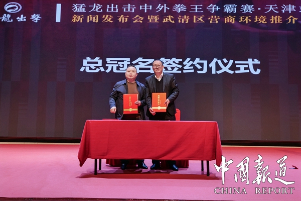 天津东升云商贸有限公司董事长王世界与吴猛鸿牛董事长正式签订天津市吴猛鸿牛总经销合同。吴猛鸿牛董事长与猛龙(天津)文化传媒有限公司董事长王世界签订猛龙出击中外拳王争霸赛天津站活动总冠名协议。(图文/吴蜀丰)