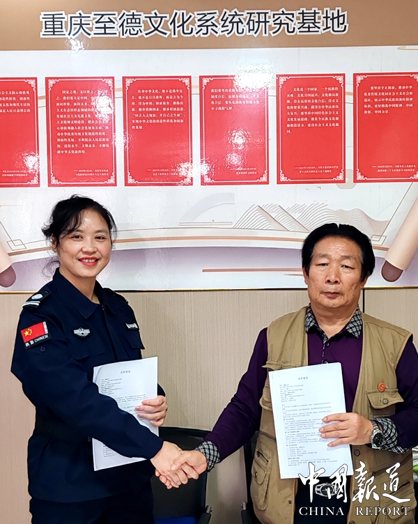 11月16日,广东警安职业训练研究中心驻川渝地区负责人吴健勇在重庆巴南区李家沱与重庆至德文化系统研究基地主任吴蜀丰深度合作并举行签约仪式。重庆至德文化系统研究基地执行主任吴平刚,总监吴兰洪参加签约仪式。