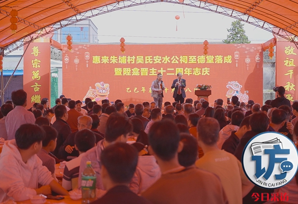 今日采访网讯(吴明文潮汕报道)11月27日(乙已年十月初八),风和日丽,丹桂飘香。朱埔村安水吴氏宗祠至德堂祥云汇聚,张灯结彩,鼓乐喧天,迎来了落成十二周年的盛大庆典,百倍喜庆。七届世吴主席吴汉龙带领惠来县吴氏宗亲总会二十多位宗亲亲临现场,与潮阳曲溪等房祖代表、朱埔村各房裔孙、朱氏宗长宗贤、村委领导、小学校长及各界来宾共六百余人齐聚一堂,共襄盛举。