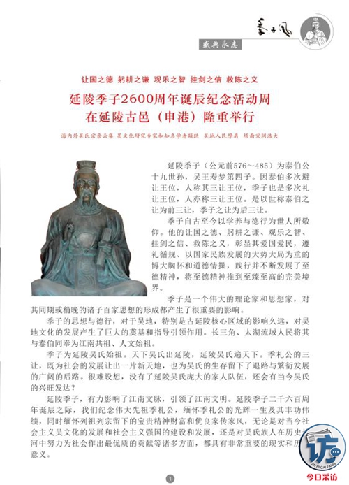 季子诞辰2600周年专辑第十期《季子风》付梓