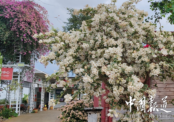 除了直接带动农户增收,大湖桥科技还推动三角梅产业与乡村旅游、文化创意等产业深度融合。在海口三角梅共享农庄,“花卉观赏+亲子研学+花艺体验”的旅游项目吸引了众多游客,年接待游客超20万人次,带动周边餐饮、住宿等服务业增收超3000万元。公司还开发出花卉精油、现泡花茶、花饰等衍生产品,延长产业链条,让花卉的价值得到最大化体现。