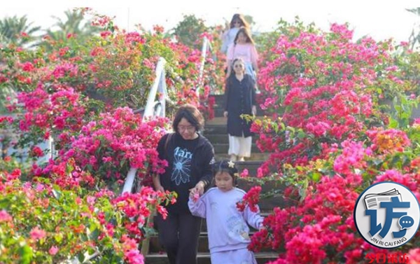 自“一树一景”模式推出以来,海口三角梅花海的游客数量逐年攀升。2026年的花展上,168种三角梅品种以“一树一景”的形式展出,游客犹如置身于三角梅的缤纷花海。有的三角梅攀援在墙壁、栈桥,姹紫嫣红的叶子花组成的“瀑布”倾泻而下;有的三角梅生长在花盆中,两三枝条上,团团花簇绽放,绿叶点缀其中,清新浪漫;有的三角梅长成几米高,一树繁花似锦,远远看去绮丽如云霞。据统计,2026年花展期间,日均游客量较上一年增长了30%,其中不少游客是专门冲着“一树一景”的特色景观而来。