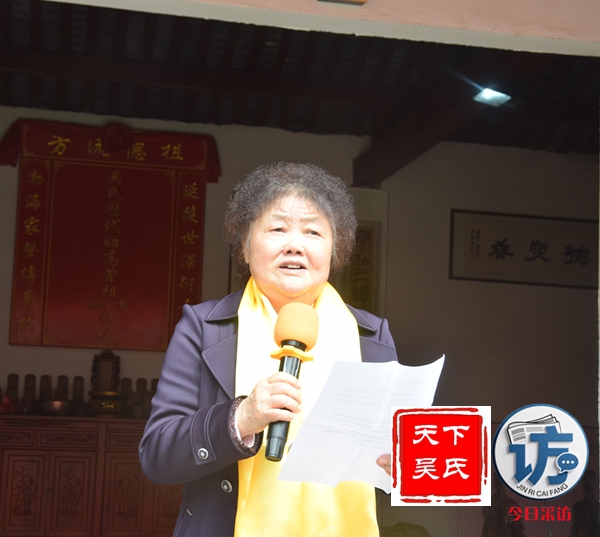 随后,举行庄重严肃的祭祖仪式,首先由主祭人吴光勇敬上龙头香,随后其他主祭人依次敬献花篮、茶水、敬果品,美酒。最后吴光平宣读祭文等仪式。川吴总会现场还慰问了部分高龄宗亲。
