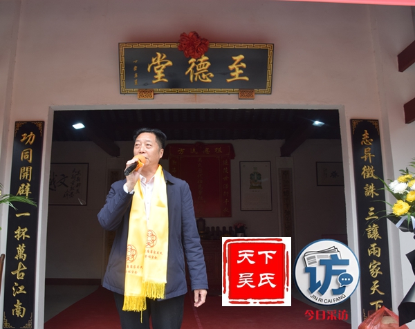 粤川两地虽相隔千里,却是根脉相连,兄弟情深,情意绵长,永世相传。我谨代表广东省龙川县吴氏协会,把吴善玉宗亲年逾91岁高龄的老父亲吴学源珍藏的《广东省龙川县吴氏簇谱》第四卷和我本人收藏的《广东省龙川县吴氏簇谱》第一卷转交给吴光勇会长。同时我们也带来了祖籍地法滔公宗祠边采集的泥土,将把这孕育生命与充满生机的故土洒在文越公祖坟上,让这带着家乡情怀的泥土在这泽润后世,福运绵延。