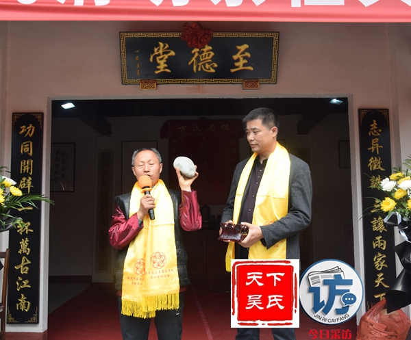 参会部分代表先后上台致词,四川省吴氏宗亲总会常务会长、新都吴氏文越公宗亲会会长吴光勇致欢迎词,四川省吴氏宗亲总会吴天智会长致辞,今日采访网、天下吴氏网创始人吴蜀丰在致词后受无锡祖地吴乐一教授特别委托向主办方赠送吴氏开姓始祖泰伯公、传代始祖仲雍公及延陵王季札公(泰伯19世裔孙)原始画像。