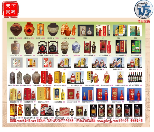 公司推出的主打产品是[老吴台]酒、[吴酒师]高品质桶装酒、[吴台]酒牌系列酱香、浓香白酒。[老吴台]酒、[吴酒师]高品质桶装酒、吴台酒牌系列优质酱香、浓香白酒均是严格遵循茅台镇酱香、浓香白酒的传统酿制工艺,在端午采曲,重阳下沙,九次蒸馏,八次发酵,七次取酒,历时数年精心酿造而成。老吴台酒、[吴酒师]高品质桶装酒、[吴台]酒牌系列酱香、浓香白酒产品投放市场以来,以其上乘的酒质,精美的包装,合理的价格,赢得了众多白酒爱好者的青睐。