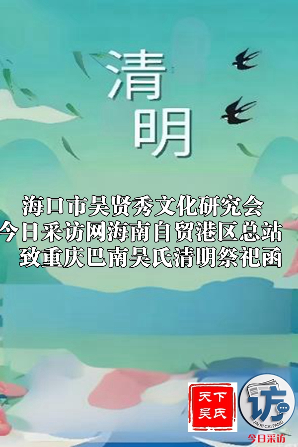 春风送暖,时序清明,慎终追远,缅怀祖德。欣闻贵会定于2026年4月4日隆重举行清明祭扫先祖活动,谨此,我们向重庆市巴南区吴氏文化促进会,向全体参与祭扫的吴氏宗亲,致以最热烈的祝贺和最诚挚的问候!