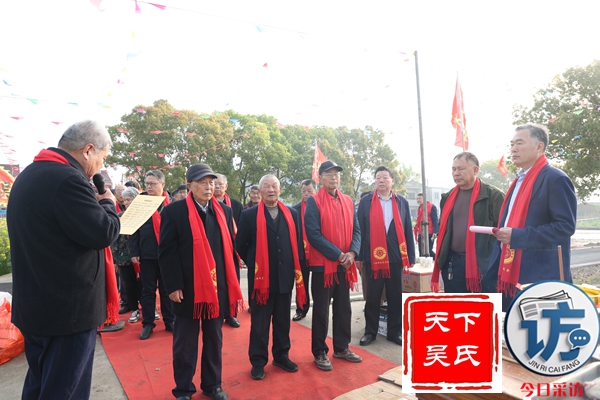 副会长吴永新在发言中介绍,慎终追远,继往开来。在这清明时节的庄重时刻,我们怀着无比崇敬与喜悦的心情,齐聚一堂,共同见证,城塘《吴氏宗谱》颁谱典礼。作为同出官林钟离吴氏的奖墅分支,城塘与奖墅同宗同源,血脉相连。今天,我谨代表奖墅分全体族人,向为续修宗谱倾注心血、辛勤付出的城塘宗亲们,致以最诚挚的感谢和最崇高的敬意!宗谱,是家族的史册,承载着先辈的智慧与精神,记录着我们的根脉与传承。吴氏一门,自古人才辈出。南宋时期,钟离始迁祖吴灌公由常郡迁至宜兴官林钟离,开基立业,三世显赫。灌公孙师古,政和年间进士,官至翰林院礼部尚书、太子太师。自迁始祖芳公城塘开基以来,近八百年间,子孙在此扎根,开枝散叶,辛勤开拓,他们坚守祖训,续写吴氏家族的精彩篇章。