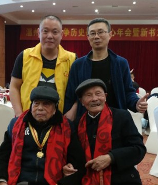 2017年12月17日,30位温州籍抗战老兵来到温州五马街五星级华侨饭店,参加温州抗战历史研究中心年会暨新书发布会,这也是抗战老兵们迎新年战友会。这次战友会,是由包括浙江温州吴燕火宗亲与吴义虎宗亲在内的温州关爱抗战老兵志愿队与仁心公益志愿队,为抗战老兵们举办的。参加战友会的,还有来自广州、南京、宁波和金华等地的志愿者们。
