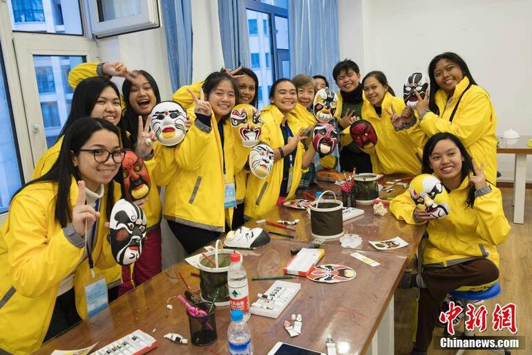 2017菲律宾华裔青少年“中国寻根之旅”冬令营的近两百名华裔青少年在哈尔滨市风华中学体验脸谱绘画课。活动期间,来自马来西亚、菲律宾、印度尼西亚和澳大利亚四国的华裔青少年们将在黑龙江开启“冰雪狂欢”模式。
