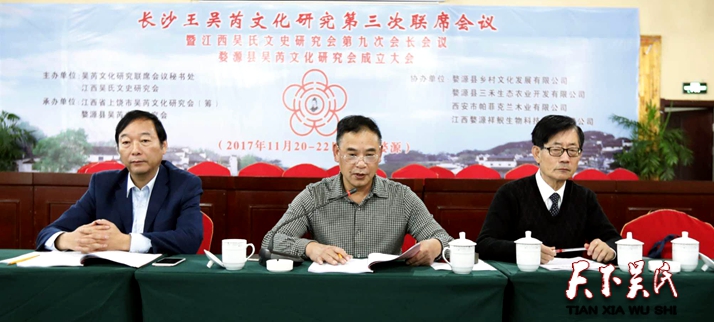 赣吴会有规划,工作稳步推进。2017年11月21日下午,江西吴氏文史研究会、江西省吴氏宗亲总会召开了第九次会长会议,总会副会长、各市(县、区)分会会长30余人参加了会议,会议由会长吴广凡主持。赣吴会4月8日,成功举办了揭牌庆典,使江西吴氏宗亲活动合法化、规范化、科学化。此后,对外派员积极参加文化交流活动,虛心学习外地的好经验、好方法。对内派员积极参与谱牒研究、良好家风征文等活动,加强对各地分会组织建设的指导,均取得显著成绩,也多次受到上级领导部门的赞扬。这次婺源会议的成功召开,更是赣吴会精心谋划、真心付出的体现。赣吴会广凡会长与小平、吴雨一行会前多次到婺源进行策划、指导、调度、协调,使婺源的整个活动,不仅得到县委、县政府及有关部门的关心和帮助,也得到了婺源广大宗亲的关注和支持,会议取得了出人意料的好效果。赣吴会当前的工作是集中精力,备足材料,迎接省社联的年检。拟以婺源会议为契机,借鉴婺源的经验,在2018年6月30日之前,一鼓作气将景德镇、吉安、鄱阳等地组织成立起来,让宗亲活动,寻根问祖,文化交流有一个较好的平台,让赣鄱大地吴文化研究创造新的辉煌。