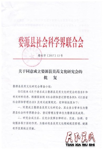 快速推动婺源县吴芮文化研究会成立。这次会议快速推动了“婺源县吴芮文化研究会”的成立。婺源县虽然吴姓人口多,但对外交往少,对吴文化研究没有起步。通过这次会议的筹备,不仅提高了婺源吴氏宗亲对吴文化的认识,更是使“婺源县吴芮文化研究会” 的筹备立即驶入快车道。此次大会的前十天内,完成了从县社联到县民政局的报告、审批、发文、刻章、建账号等一切手续,使得大会上按预定计划揭牌。