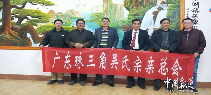 中国报道讯(记者吴蜀丰 特约采编 吴昌禄)2017年12月25日下午,珠三角吴氏宗亲总会会长吴锦添、执行会长兼秘书长吴昌禄、博罗县吴氏宗亲联谊会理事长吴卫忠、秘书长吴百祥、徐闻县吴文化研究会会长吴堪兴吴有梧等宗长汇聚在惠州市博罗县湖镇镇参加“湖镇千锣百鼓旅游节”活动。在活动前,三会的宗长们在湖镇镇聚圆农庄进行了亲切友爱的交流,并合影留念。