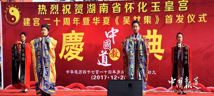 中国报道讯(记者吴蜀丰)今日(2017年12月26日),来自世界至德总会,中华吴氏宗亲总会,湖北吴氏文化研究总会,湖北新洲至德堂、新洲吴氏文化研究会、红安吴氏文化研究会、大悟吴氏文化研究会、咸宁吴氏文化研究会、鄂东吴氏文化研究会;湖南省至德文化委员会、湖南省吴氏宗亲总会,湖南长沙市、怀化市、衡阳市、郴州市、常德市、湘潭市、娄底市、益阳市、平江县、醴(李)陵市等吴文化至德文化研究机构,贵州至德文化研究会及贵阳市、黔(前)东南等地至德文化研究机构,江西吴氏文史研究会、江西省吴氏宗亲总会、赣(干)南吴文化联谊会;浙江吴文化宗亲会、温州泰伯文化研究会、温州吴氏文化交流会;厦门市吴文化研究会及海内外吴氏宗亲组织等相关有关部门负责人及近800多名代表相约湖南省怀化市参加玉皇宫建宫二十周年盛典。