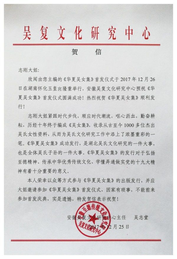 感谢吴冬梅道长、吴志刚会长为吴氏的奉献!