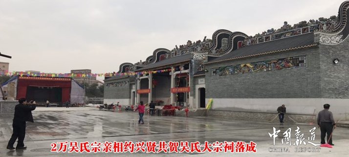 据介绍,坐落在广三高速路旁的吴氏大宗祠自2014年开始重建,目前宗祠的主体建筑基本完工。据村民回忆,吴氏大宗祠自明朝开始建立,后来被改造成学校(兴贤小学的前身)。