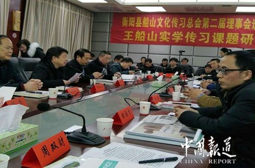 中国报道讯(记者吴蜀丰)2017年12月31日,由湖南省衡阳县王船山研究室主办的“王船山实学传习研讨会暨衡阳县船山文化传习总会第二届理事会选举会议”在衡阳县政府常务会议室举行,湖南衡阳至德文化研究会副会长吴冠东被聘为船山文化艺委会主任委员、被评为2017年度优秀船山国学研究、传习艺术家,并作为衡阳市艺术界代表发言,吴冠东还草书了船山先贤的精句:“经世致用,知行并进,纯志成德,相天造命”。