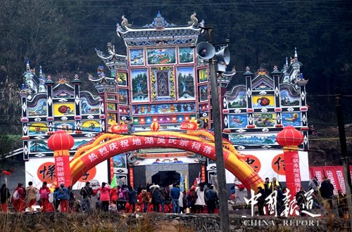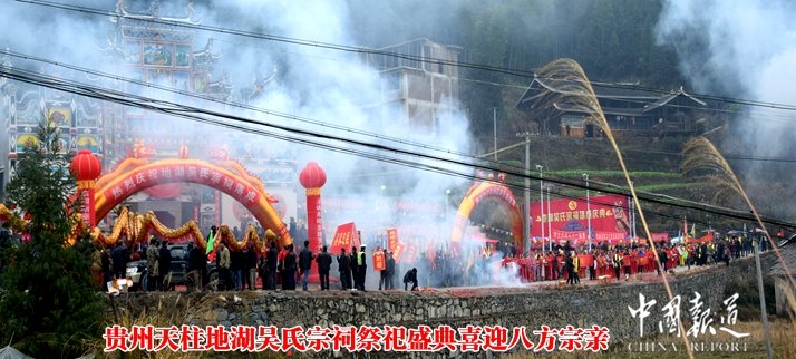 中国报道讯(记者吴蜀丰)耗资上百万元,历时1年时间修建的位于贵州省天柱县境内的地湖吴氏宗祠今日(2018年元旦)举办祭祀盛典仪式。