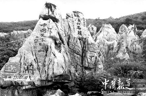 金龙村那高高矮矮的山岗属于典型的石灰岩地形,大小不一的岩石错落有致地分布于山坡上。吴国威花了半年多时间,从荆棘与泥块中砍出了一片石林。为了所选印章具有代表性、艺术性、历史性,他从数万枚印章中挑了又挑,再三斟酌后才定稿。6年来,他深埋在一米多高的资料堆里,研究着每枚印章独有的字法、章法与刀法,一步一步完善心中的构想。功夫不负有心人。如今,初具规模的"中国印山"以独特的艺术魅力吸引了众多参观者,前来这里旅游观光的游客已达6万余人次。