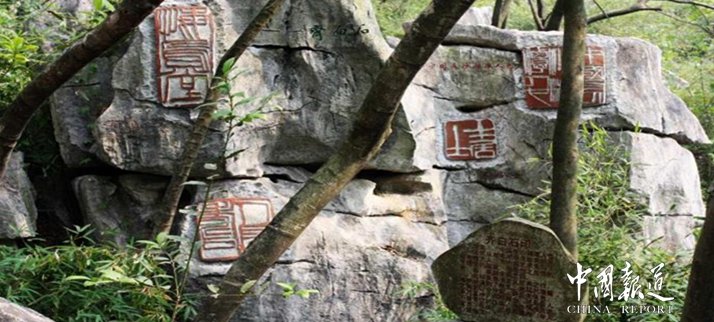在湖南省常宁市庙前镇,有一座全国独有的"中国印山",500多枚形态各异的朱红印章篆刻作品镶嵌在大大小小的石头上。倾力打造这座印山的,是常宁市文联主席吴国威。
