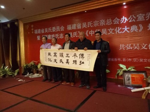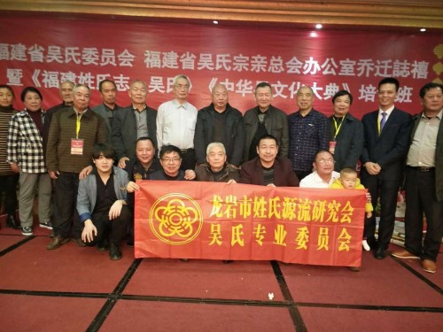 2017年12月29-31日,龙岩市姓氏源流研究会吴氏专业委员会(简称龙岩市吴氏委员会或岩吴会)在会长吴汉鑫的带领下,率团赴福州参加福建省吴氏委员会 福建省吴氏宗亲总会新办公室乔迁暨《福建姓氏志.吴氏》《中华吴文化大典》培训班以及2017年全省各市县(市区)吴氏会长第三次会议,还有岩吴会副会长 连城县会长吴家贞及夫人,岩吴会副会长 漳平市会长吴余旺,岩吴会副会长 新罗区联络人吴杰,岩吴会秘书长吴家亮,长汀县副会长吴水金秘书长吴钦盛,永定区常务副会长吴连清,连城县培田村会长吴来生,新罗大池宗亲吴文斌,连城培田宗亲吴斌,连城文亨宗亲吴炎均2人,漳平宗亲吴土盛等一行共16人随团参加了会议。