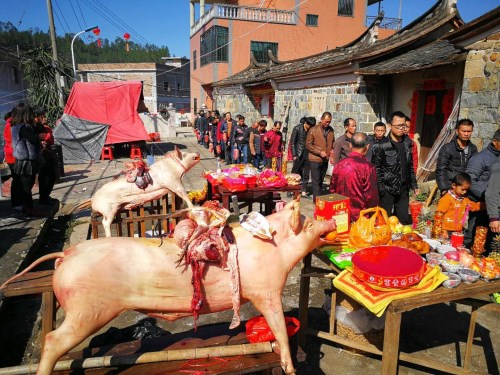2018年1月10日,同安汀溪镇造水村郑宅吴王爷、杨太真人,逢十年一任的做礁日。整个村庄热闹非凡,家家户户杀鸡宰猪,摆出丰盛祭品朝拜各位神明。吴国荣会长携金武副会长,万年宗长专程参加盛典。受到郑宅吴荣真、吴稳水等吴氏众宗親的锣鼓和鞭炮的热情欢迎,场面充满了親情和热闹的氛围。广东陆丰碣石的郑宅吴氏裔孙,组织了二十多位宗親专程回祖地参加庆典。国荣会长与广东宗親进行了亲切的畅叙和交流。国荣会长一行也来到同安汀溪镇吴厝宗祠,对宗祠的落成表示祝贺,得到吴仁贵、吴海滨宗长及众宗亲的热情接待。