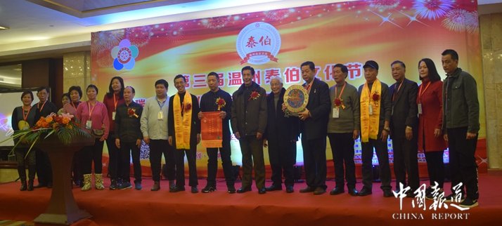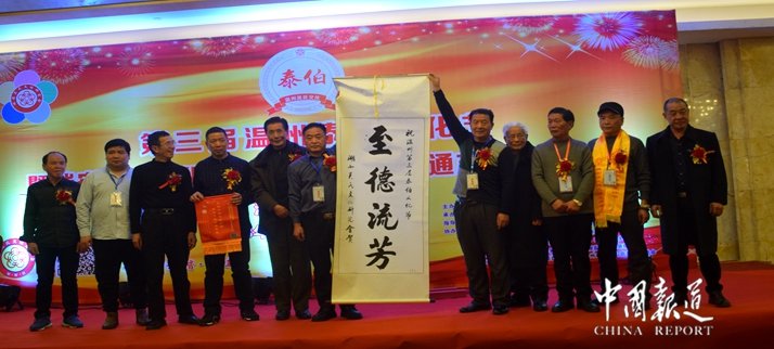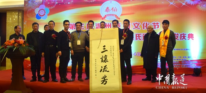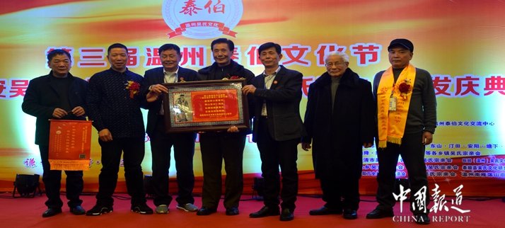 中国报道讯(记者吴蜀丰)三让天下孔子赞,泰伯高风旷古今。天下吴氏一家亲,吴氏文化共传承。在今日(1月12)举行的第三届温州泰伯文化节暨瑞安吴氏文化研究会《瑞安吴氏通志》首发庆典欢迎晚会上,来自海内外华人、华侨及港澳台同胞及全国20省市吴氏宗亲参加欢迎晚宴。