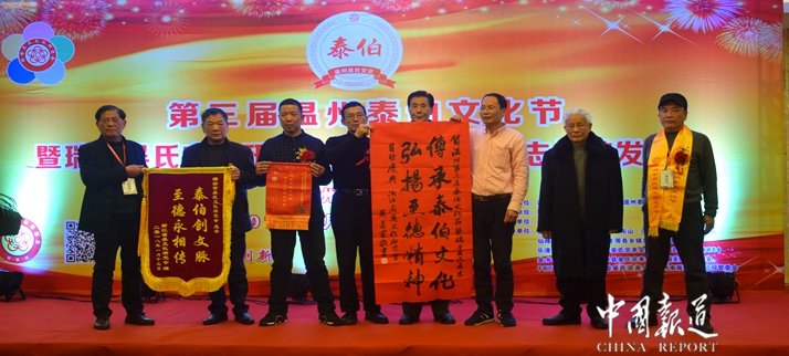 中国报道讯(记者吴蜀丰)三让天下孔子赞,泰伯高风旷古今。天下吴氏一家亲,吴氏文化共传承。在今日(1月12)举行的第三届温州泰伯文化节暨瑞安吴氏文化研究会《瑞安吴氏通志》首发庆典欢迎晚会上,来自海内外华人、华侨及港澳台同胞及全国20省市吴氏宗亲参加欢迎晚宴。